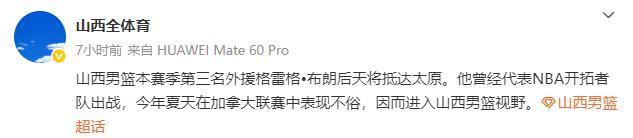 山西男篮这两年在外援选择方面的眼光还是非常不错的,应该已经对格雷格-布朗进行过全面考察,认为他能够给球队带来不小的帮助。从“山西全体育”透露的消息来看,格雷格-布朗将会于30日抵达太原和山西男篮会合。接下来还有一个多月的时间,格雷格-布朗会和山西男篮一边磨合,一边熟悉CBA联赛的比赛节奏和强度。