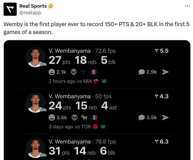 更重要的是,期间年轻的马刺队亮出3大杀招,核心文班亚马持续暴走成为历史首人。