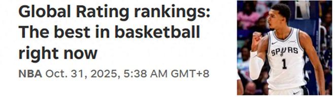 文班亚马第一!美媒公布本季TOP20球星:申京10里夫斯3新科探花15
