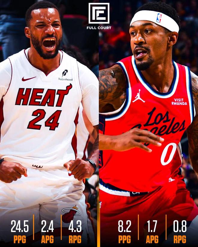 作为对比,加盟热火的鲍威尔:场均24.5分4.3篮板2.4助攻1.4抢断,投篮命中率46.0%,三分命中率45.8%,真实命中率64.4%——别说是平替了,一半的水平都没达到。
