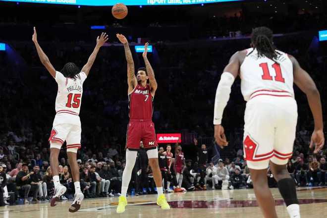 中场休息回来,热火进攻火力暴跌比第二节少得到17分,也是首次单节不超过25分,公牛第二次单节得分30+。热火扩大67-56领先优势,公牛一波10-0攻势追分,双方持续缠斗至热火82-81领先。公牛一波10-1攻势反超9分,热火罚球再得1分,热火单节21-35输掉14分,三节结束热火84-91被公牛反超。前三节比赛,公牛三分命中数15-9领先,奥科罗19分与多森姆19分,引领5人得分上双;拉松17分与哈克斯15分,引领4人得分上双。