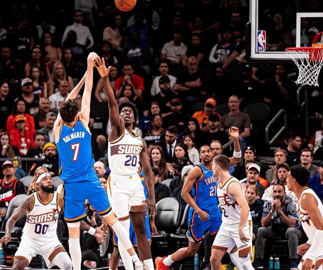 卫冕冠军雷霆尽管缺少了亚历山大,但他们在客场仍然以136-109大胜太阳,迎来两连胜,以42胜13负稳居第一。本场比赛雷霆多点开花,7人得分上双,杰伦-威廉姆斯发挥高效12投11中,仅仅投丢了一球,拿到了全队最高分28分4篮板5助攻,替补球员乔命中了6记三分,加上4罚3中拿到了21分。太阳缺少了布克、格林、阿伦,他们受到的影响更加明显,狄龙19投9中空砍了23分5篮板4助攻,而且这一场比赛,狄龙又吃到一次技术犯规,累计16次T,下一场比赛不得不被禁赛。