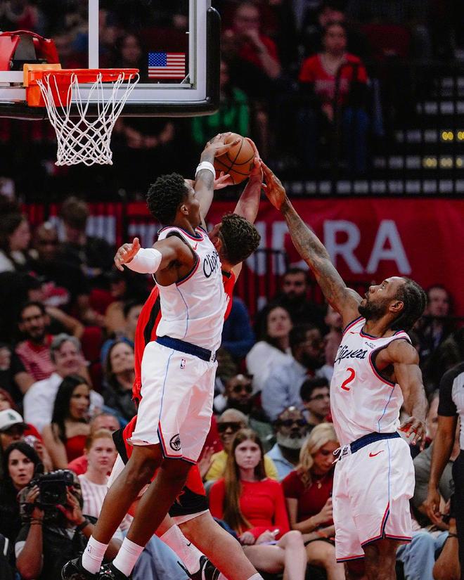 伦纳德以45%的命中率轰下了全场的最高分,他还是全场罚球次数第二多的球员。伦纳德作为此战的篮板王,他的3个前场篮板也领跑全队。并且,伦纳德送出了全队第二多的助攻。防守端,伦纳德威慑力十足,送出了全场最多的抢断。