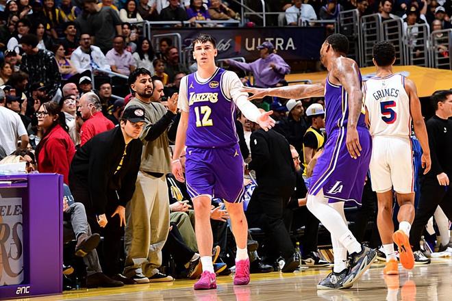 本场比赛中,湖人的替补侧翼新星杰克-拉拉维亚(Jake LaRavia)的表现也算是中规中矩。拉拉维亚全场出场14分03秒,投篮1中1,三分线外1中1,得到了3分1篮板1助攻的数据,还有4次犯规,正负值为+1。拉拉维亚在本场比赛中的出场时间出现了大幅度的减少,他在场上的角色也是远不如之前绝大多数场次的比赛。这种情况下,拉拉维亚也是没有办法得到足够的出手机会,他在进攻端的贡献度也是比较有限的。但是总体来看,拉拉维亚也算是起到了自己的作用,他在进攻端命中了一记三分,也没有出现什么太大的问题。除此之外,拉拉维亚在防守端也是兢兢业业,积极性十足。拉拉维亚的数据不算出彩,但是他还是发挥出了自己的作用,为球队的胜利做出了自己的贡献。